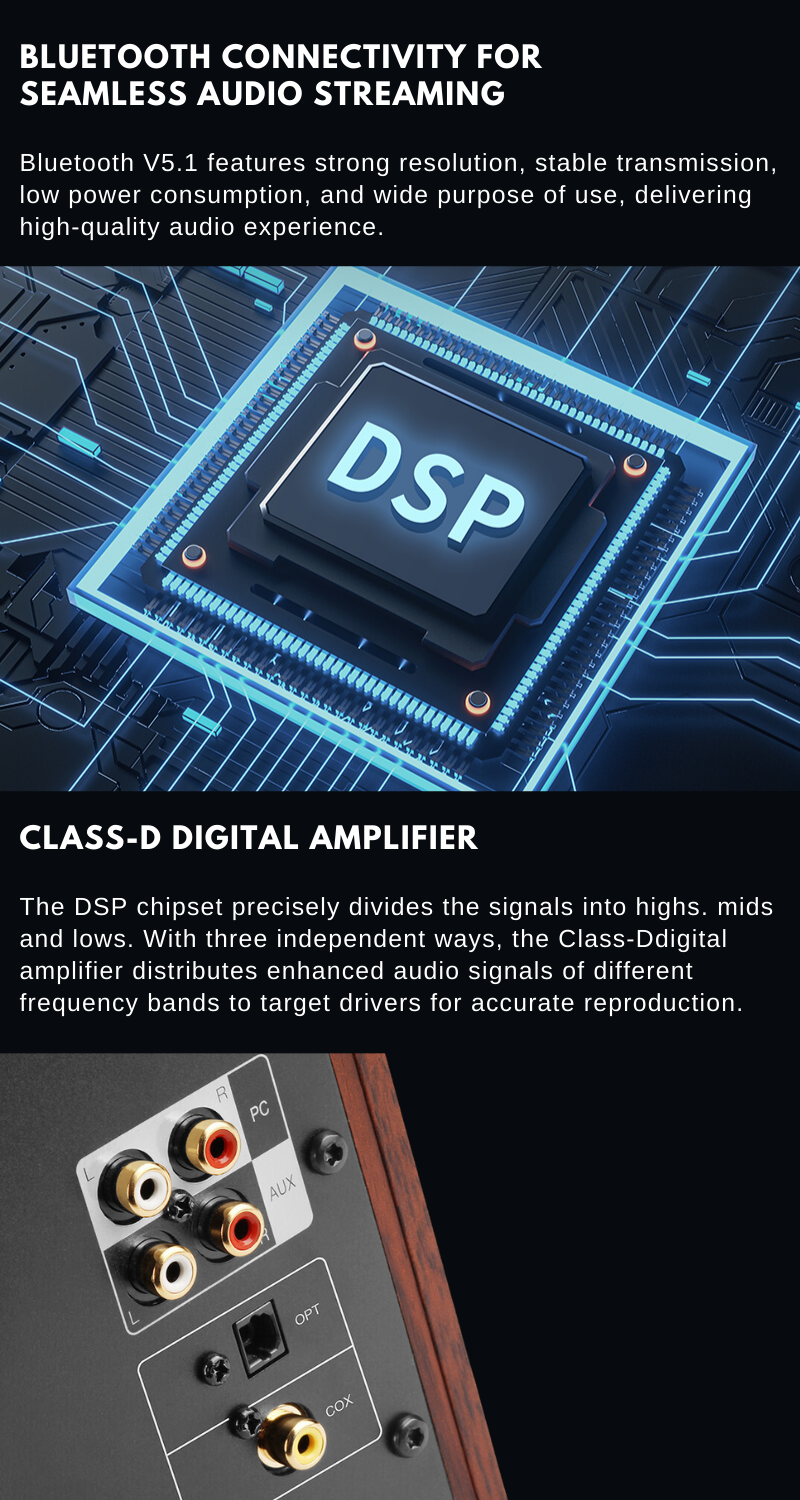 Edifier S360DB ที่มาพร้อมAmplifiers,DAC(แอมป์แดค) และใช้ตัวแปลงรหัสเสียง DAC แบบ ( Digital To Analog Conventor ) ของTexas Instruments( TAS5754M ) 24-bit at 192kHz S/PDIF ซึ่งจะให้คุณรับฟังคุณภาพภาพเสียงที่ดีกว่า