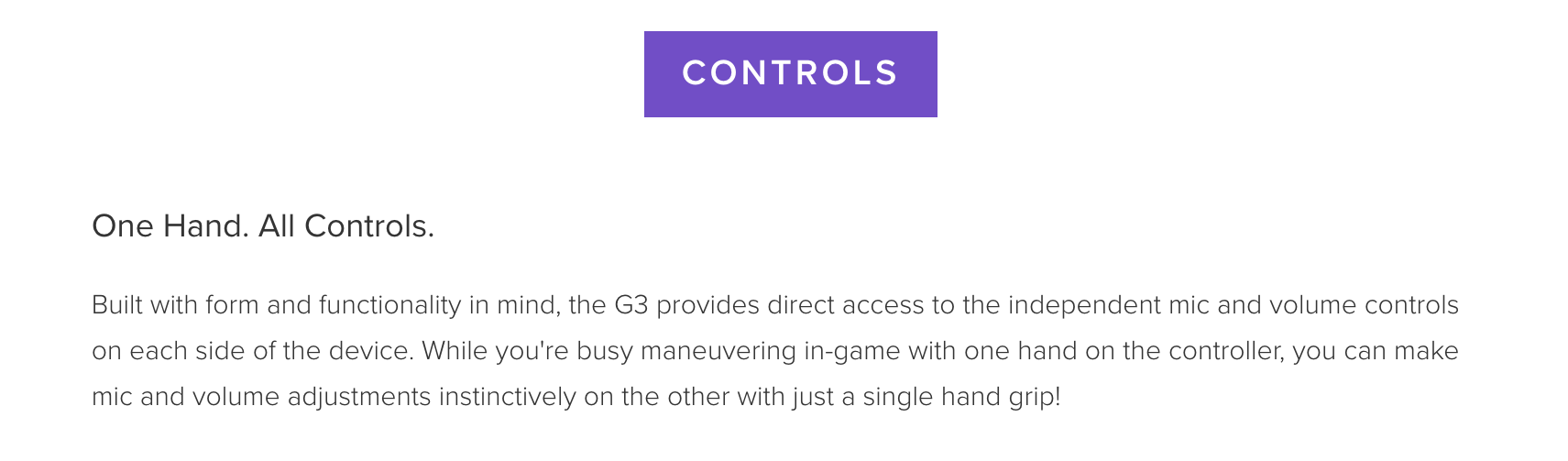 -CONVENIENT AND DIRECT AUDIO CONTROLS - The independent volume and mic controls are located at the sides of the G3, and can be easily controlled with a single hand grip to conjure up the perfect balance for better gameplay. When communications are unnecessary, simply mute your mic directly via the switch on the G3