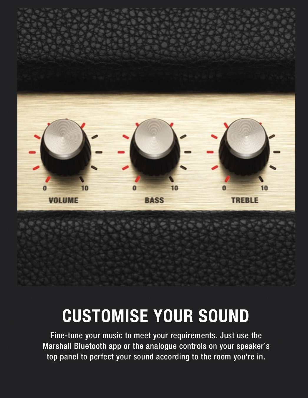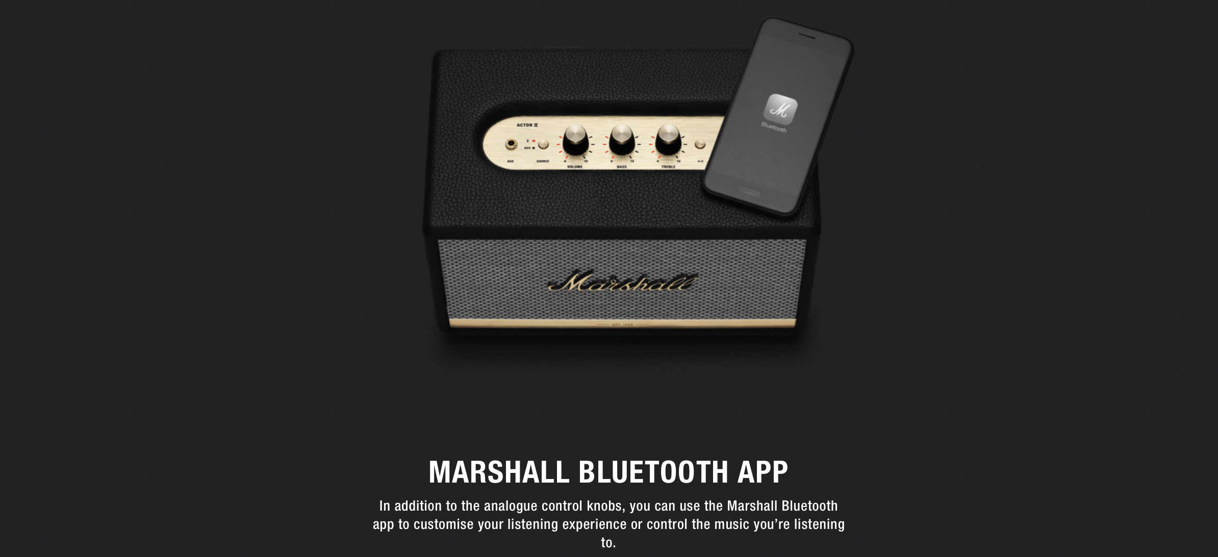 -APP MARSHALL BLUETOOTH นอกเหนือจากปุ่มควบคุมแบบอะนาล็อก คุณสามารถใช้ แอพ Marshall Bluetooth เพื่อปรับแต่ง และ ปรับ EQ