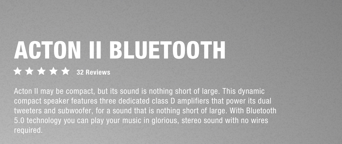-Marshall ACTON II ลำโพงบลูทูธที่เล็กที่สุดในรุ่นต่างๆของ Marshall ตัวเล็กแต่เสียงใหญ่มาก