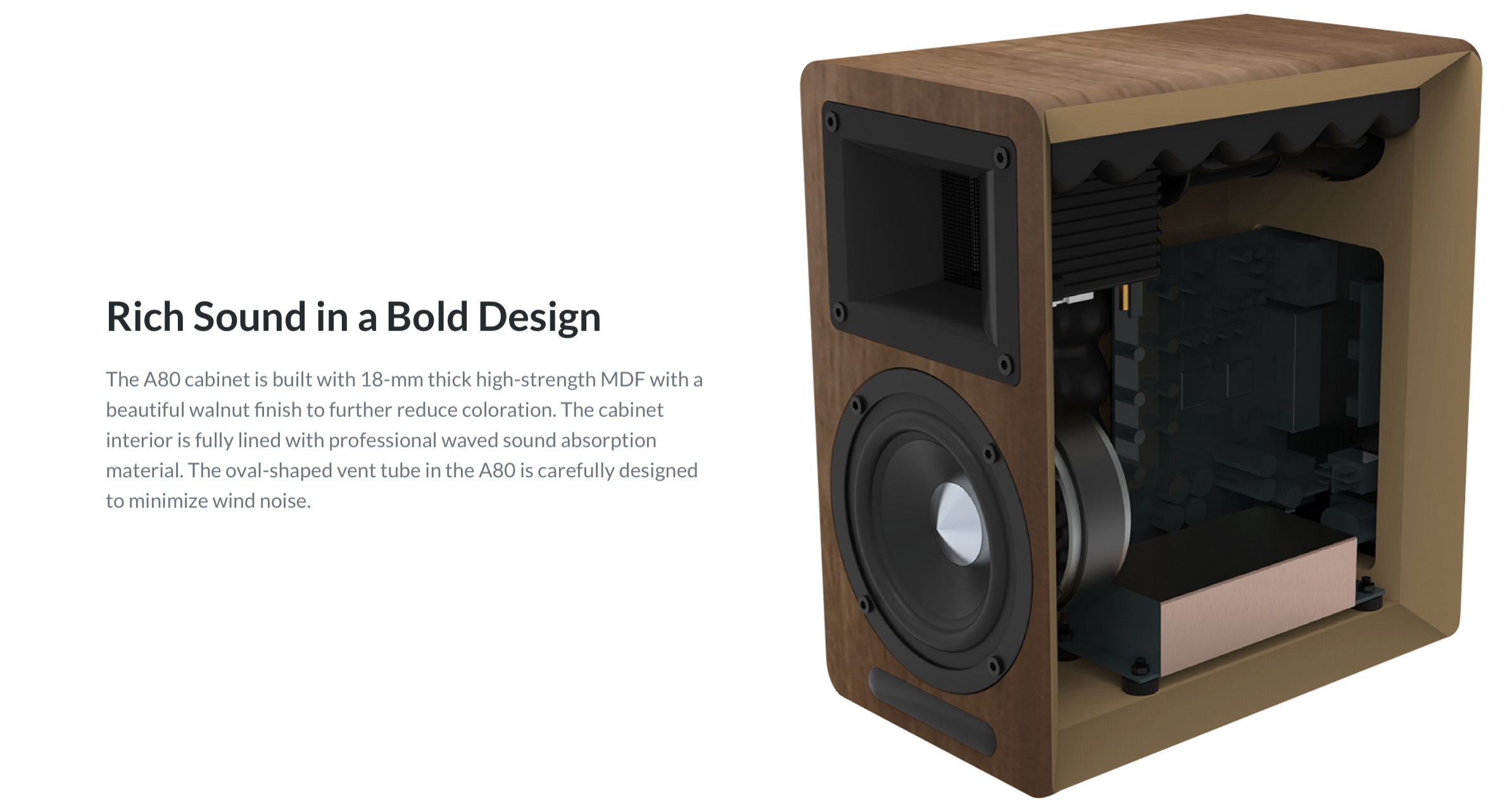 ![]() ![]() Ribbon tweeters & 4.5" mid-woofer The meticulously formulated horn shape produces directional and optimized high frequencies from the ribbon tweeter, so they are aimed at the listeners, minimizing unwanted effect from room reflection. Designed from the ground up by Phil Jones All technical and design aspects of the A80 were personally crafted by Phil Jones, to reflect our commitment to providing exceptional audio quality. ![]() Built-in amp with subwoofer output The system reserves a subwoofer signal output in case of a situation that needs low-frequency rendering with strong bass. Listen to audio from any source with its multiple inputs, including AUX, PC, USB, Optical, and Bluetooth. ![]() ![]() ![]() ![]() ![]() ![]() ![]() ![]() ![]() ![]() ![]() ![]() ![]() ![]() ![]() |