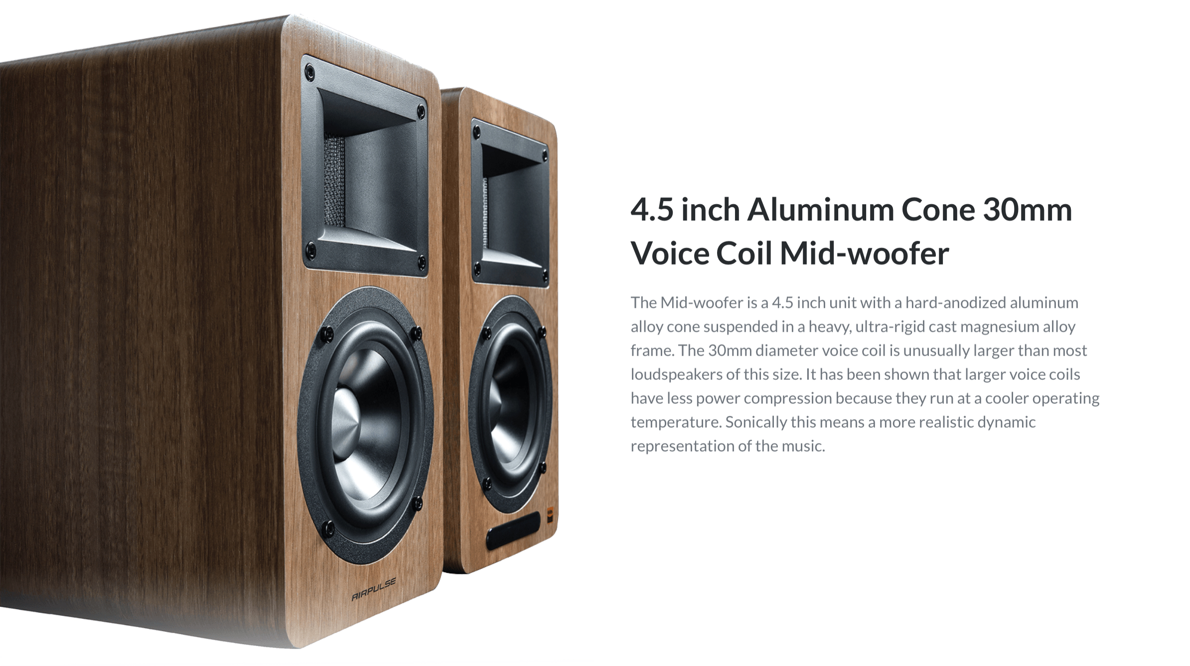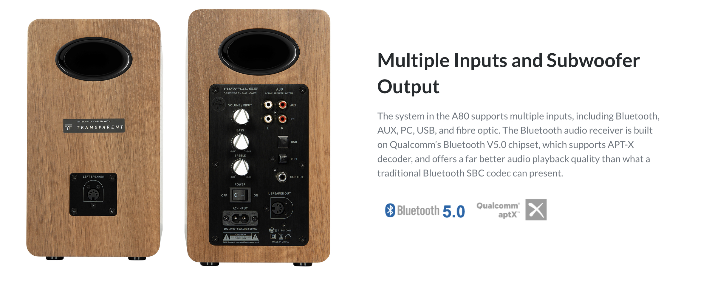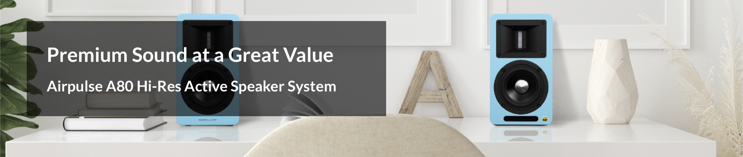 -AIRPULSE A80 ชุดลำโพงมัลติมีเดีย 2.0 แชนแนล กำลังขับรวม เพาเวอร์แอมป์ Xmos Processor ขนาด 100 วัตต์ RMS ภาคขยายใช้ระบบ Bi-amp และสายลำโพงแบบ Bi-Wire