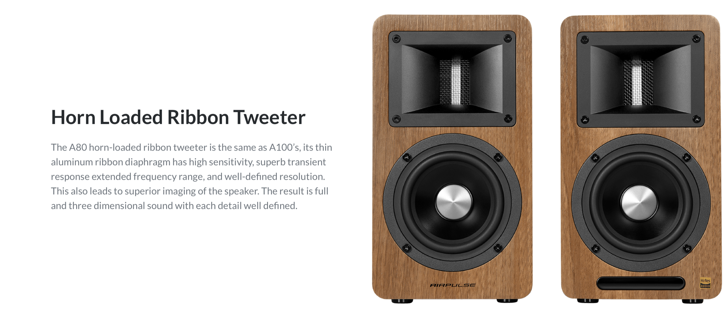 -Edifier AIRPULSE A80 ลำโพง2.0 ระดับ Hi-Res Audio ที่มาพร้อมดอกแหลมของรุ่นลำโพงFlagshipกันเลยทีเดียว (Horn Loaded Ribbon Tweeter) พร้อมภาคขยาย(แอมป์แดค) Xmos Processor