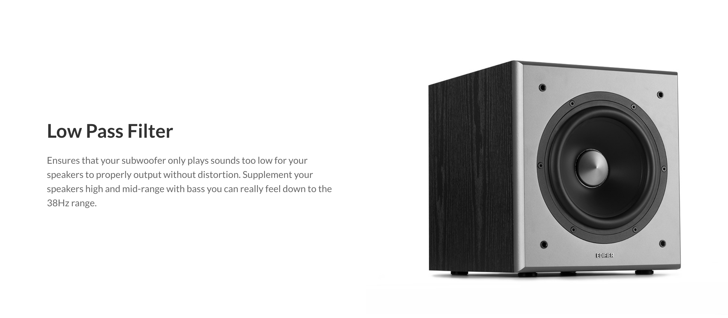 Ensures that your subwoofer only plays sounds too low for your speakers to properly output without distortion. Supplement your speakers high and mid-range with bass you can really feel down to the 38Hz range.