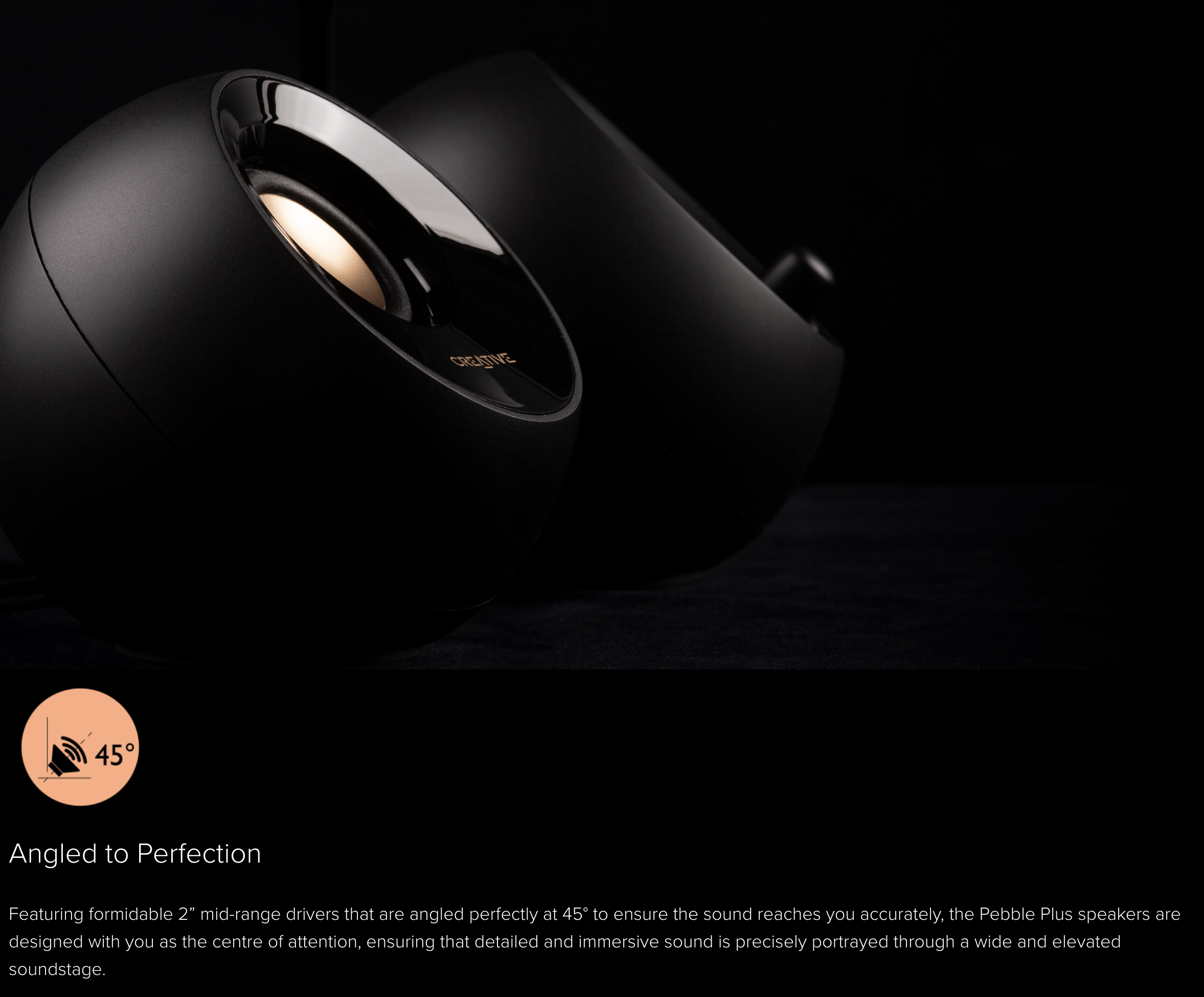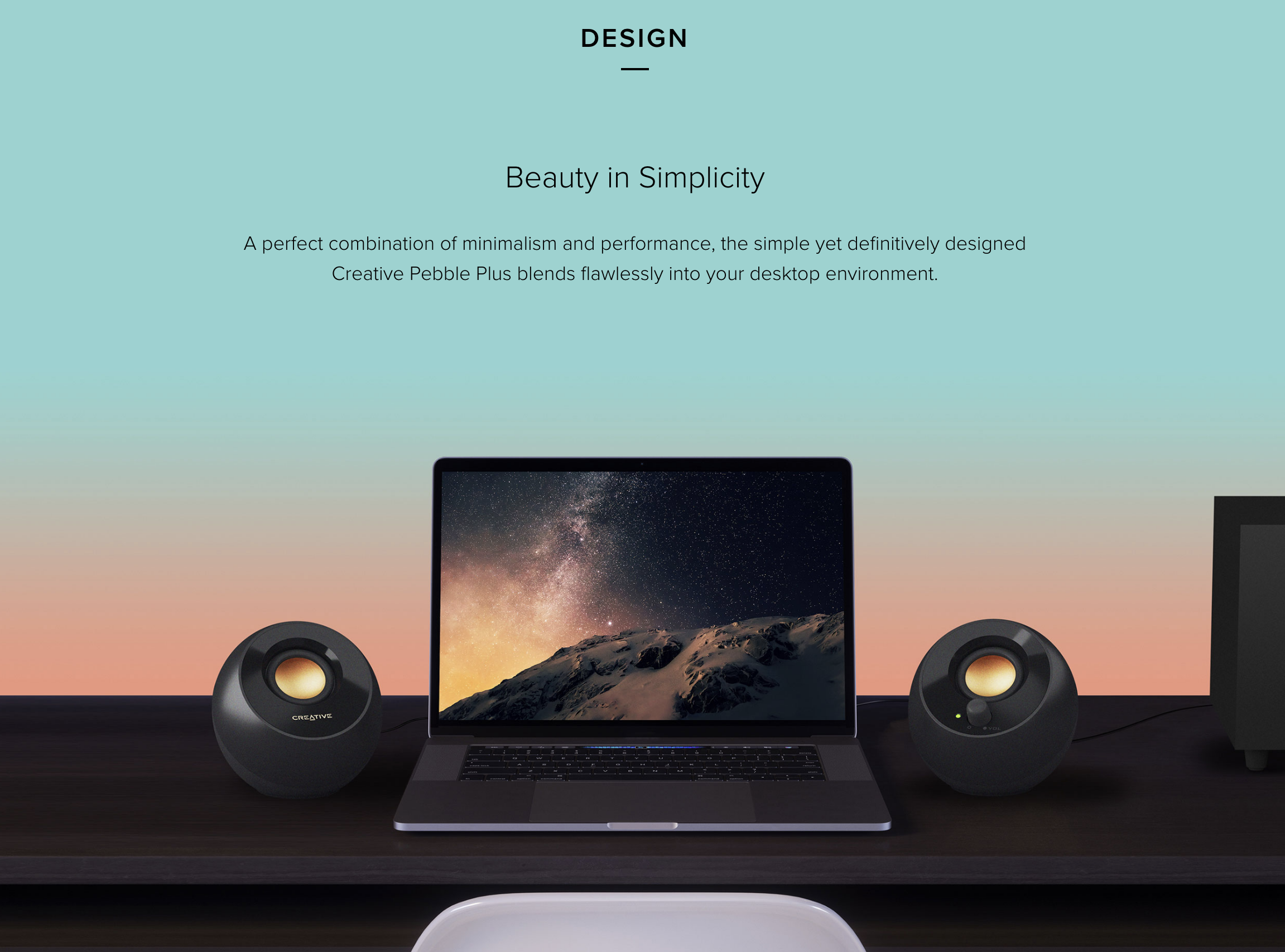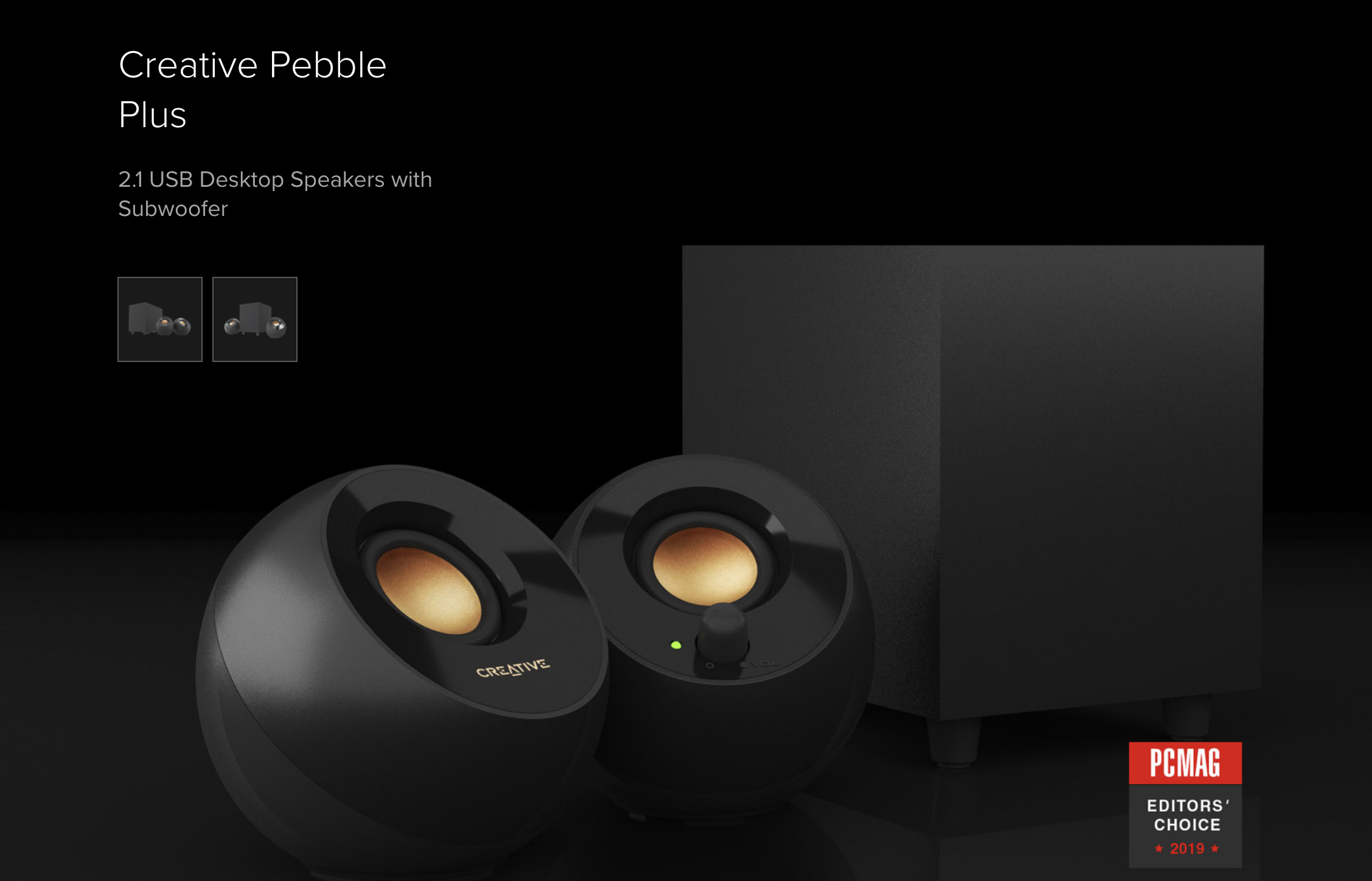 -ลำโพงคอมพิวเตอร์ดีที่สุดของปี 2018 โดย PC MAG Creative Pebble Plus ยกระดับการประสบการณ์การฟังของคุณโดยให้เสียงเบสเป็นสองเท่า ในขณะที่ยังคงการออกแบบดีไซน์ เรียบง่าย พร้อมการเชื่อมต่อด้วย พอร์ต USB