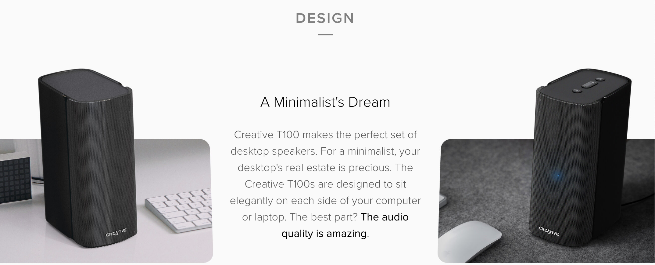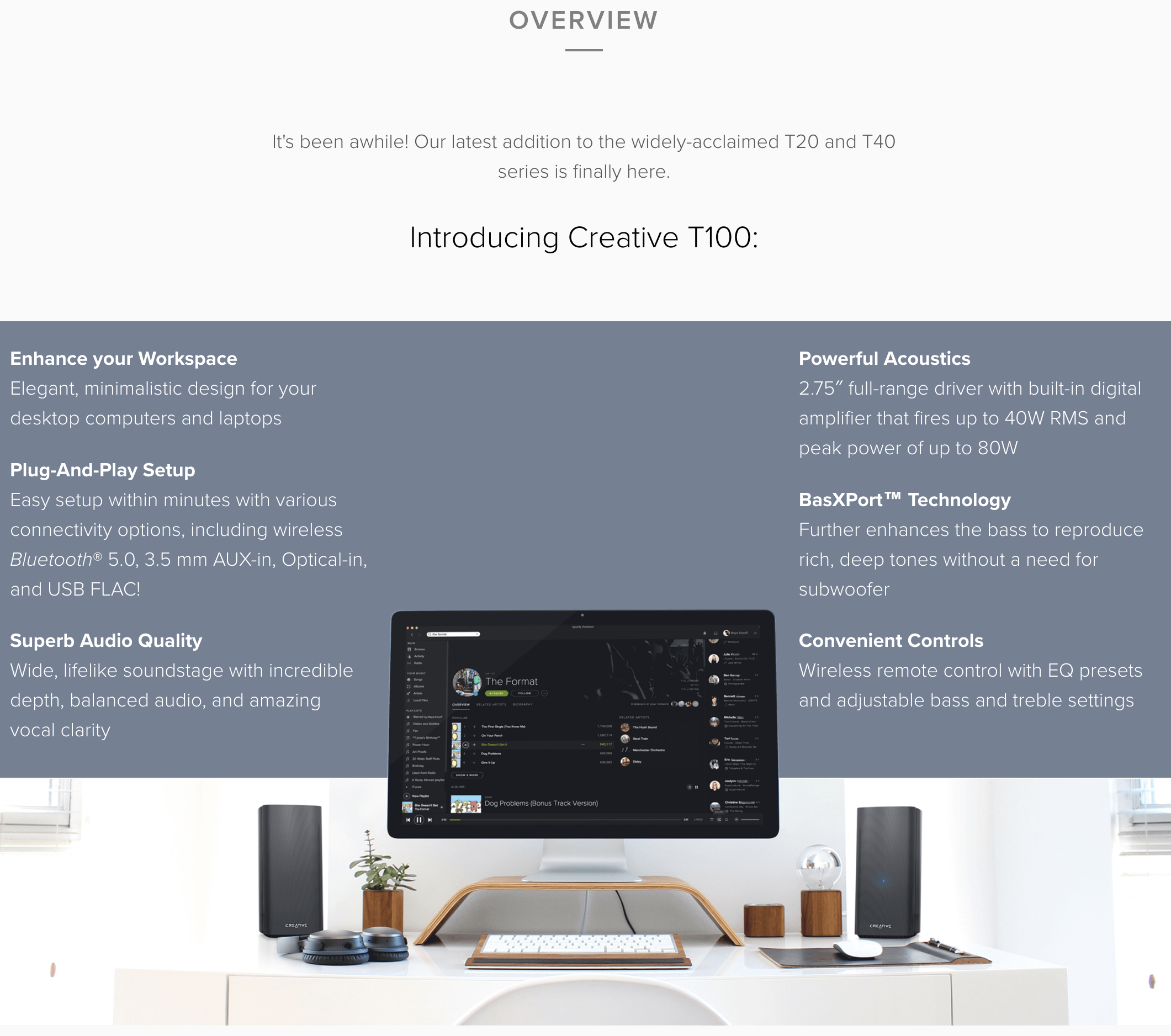 ◼️ Creative T100 มาพร้อมกับดีไซน์ที่เรียบหรู เน้นการใช้งานได้จริง เหมาะสำหรับทุกการจัดวาง